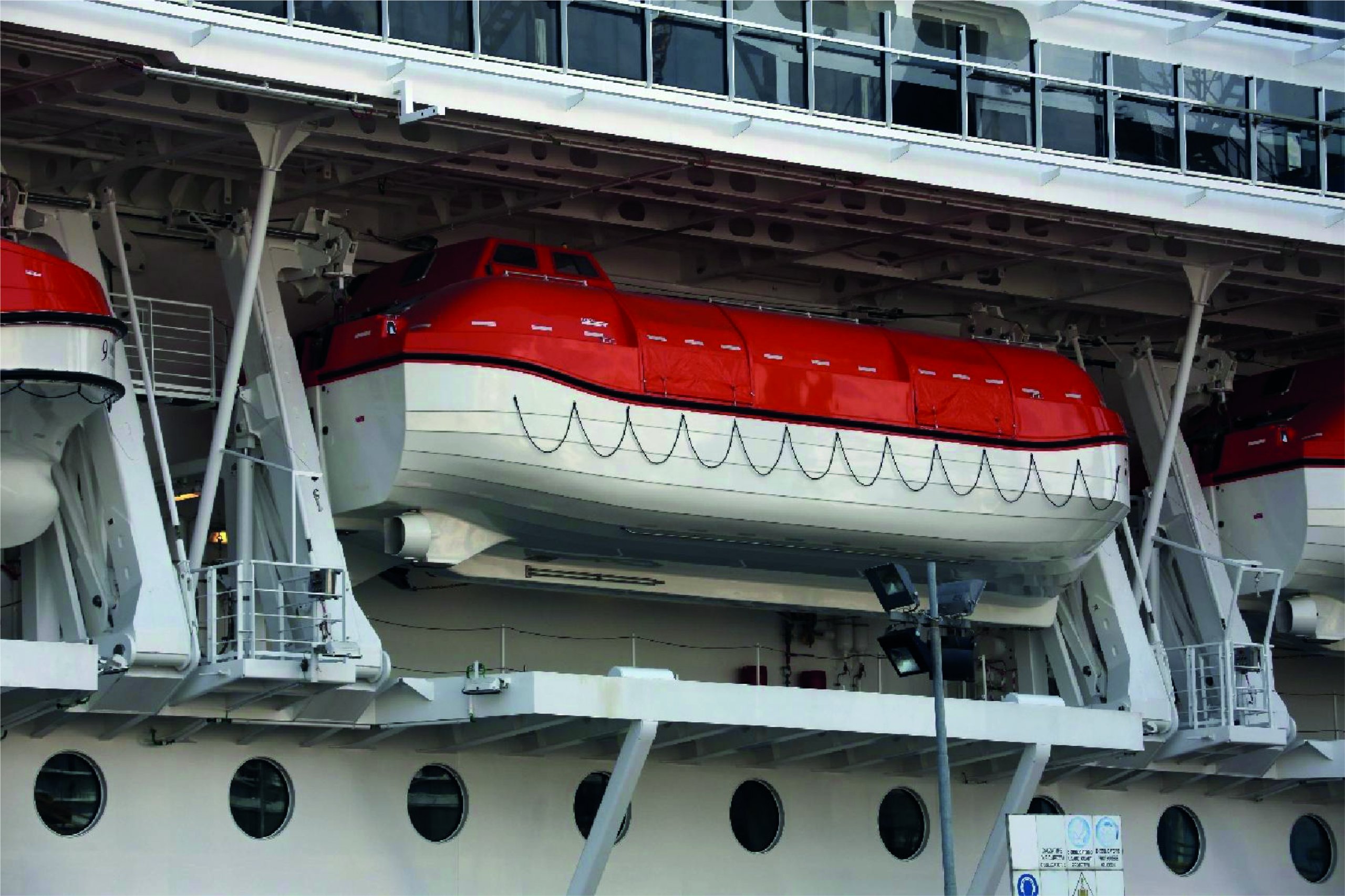 Navim Group has also designed, engineered and successfully delivered the DAVITS: Semigravity Davits System for Life, Tender and Rescue Boats in particular 14 Semi-gravity Davits for Lifeboats (314 pax), 4 Semi-gravity Davits for combined Lifeboat/Tenderboat (267), 2 Semi-gravity Davits for Life Rescueboats (6 pax) and 2 Telescopic Davits for Rescueboats (6 pax) with Suez Service.