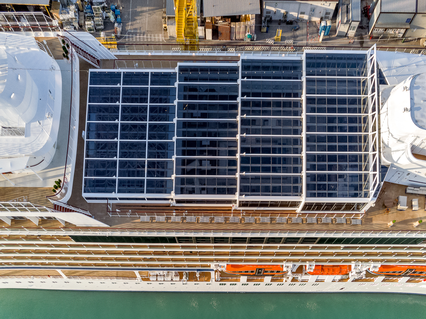Navim Group will contribute supplying a lot of systems among which a very stylish and elegant Skydome; interesting are also the Windows Washing System, the Side shell doors and the Davits Systems.